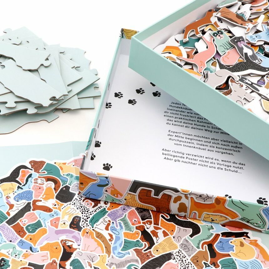 Das anspruchsvolle Hunde Knäuel-Puzzle aus dem deutschen Laurence King Verlag stammt von der französischen Illustratorin Léa Maupetit. Zu ihren Kunden gehören die New York Times und Möet Henessy.