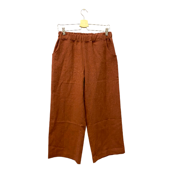 Unsere CORDULA kommt im Gegensatz zu unserer Culotte ohne Falte am Bund aus. Dadurch hat sie ein schön gerade geschnittenes Bein mit einer angenehmen Weite. Der LEINEN macht einfach jede Bewegung mit und das weiche breite Bauchgummi verzeiht auch das 2. Stück Kuchen ;-). Die tiefen großen Taschen helfen beim cool rumstehen.