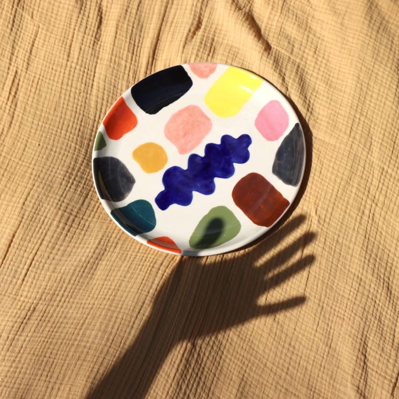 Die neue Serie Mottle Ceramics ist die neueste Ergänzung der Steinzeugkollektion und hat ein farbenfrohes, abstraktes Design, das von der Gemäldepalette eines Künstlers inspiriert ist.