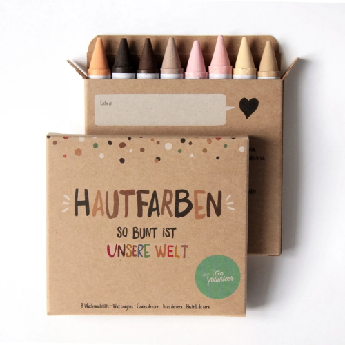 8 bunte Hautfarben-Wachsmalstifte, von Pädagog:innen empfohlen. Jetzt in der “So bunt ist unsere Welt” Edition!