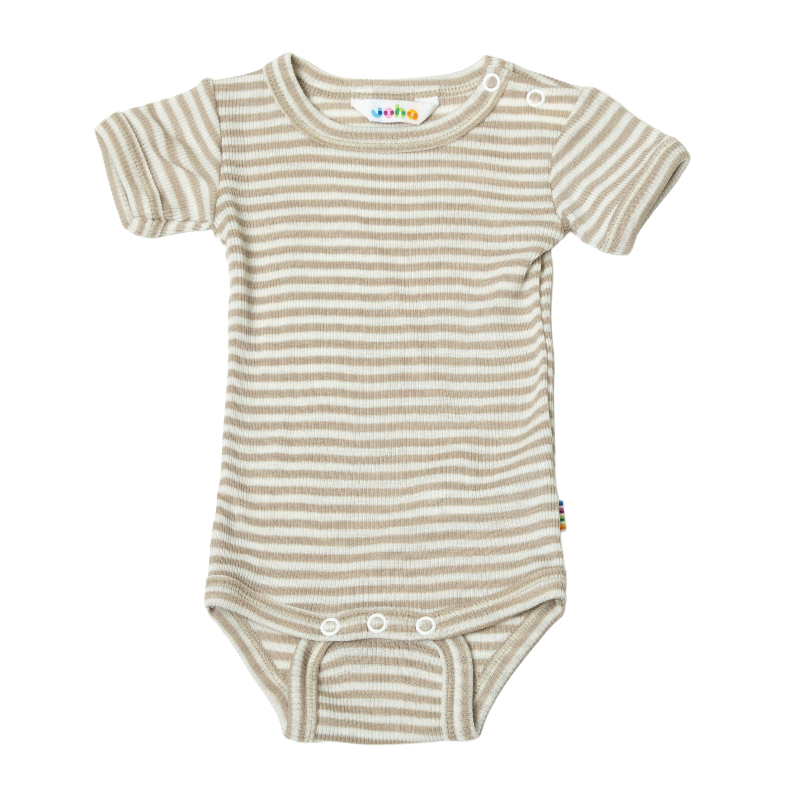 Schreibe die erste Bewertung für „Kurzarm Body Wolle Seide Joha ‘beige gestreift’“