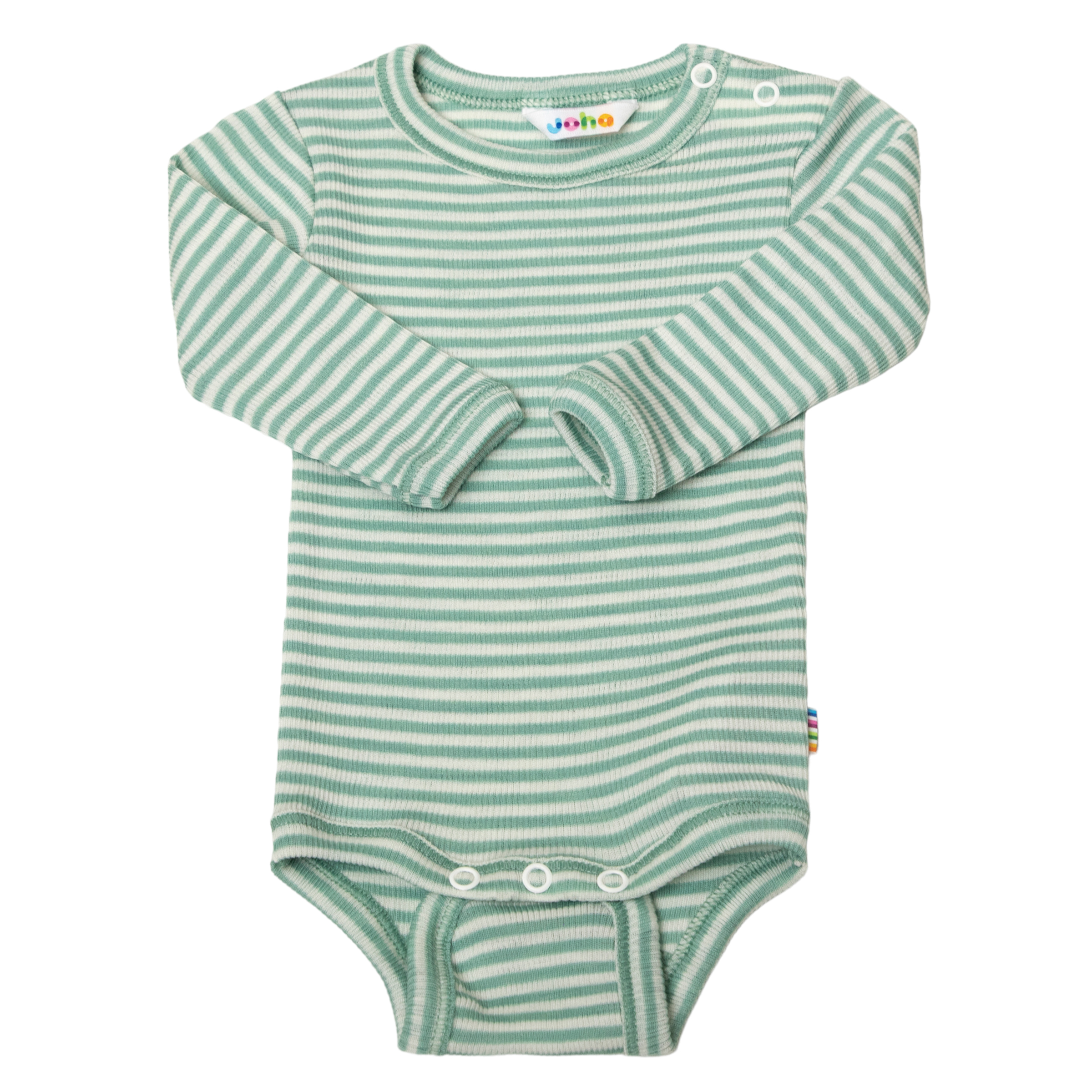 Langarm (Wickel)Body Wolle Seide Joha ‘mint gestreift’