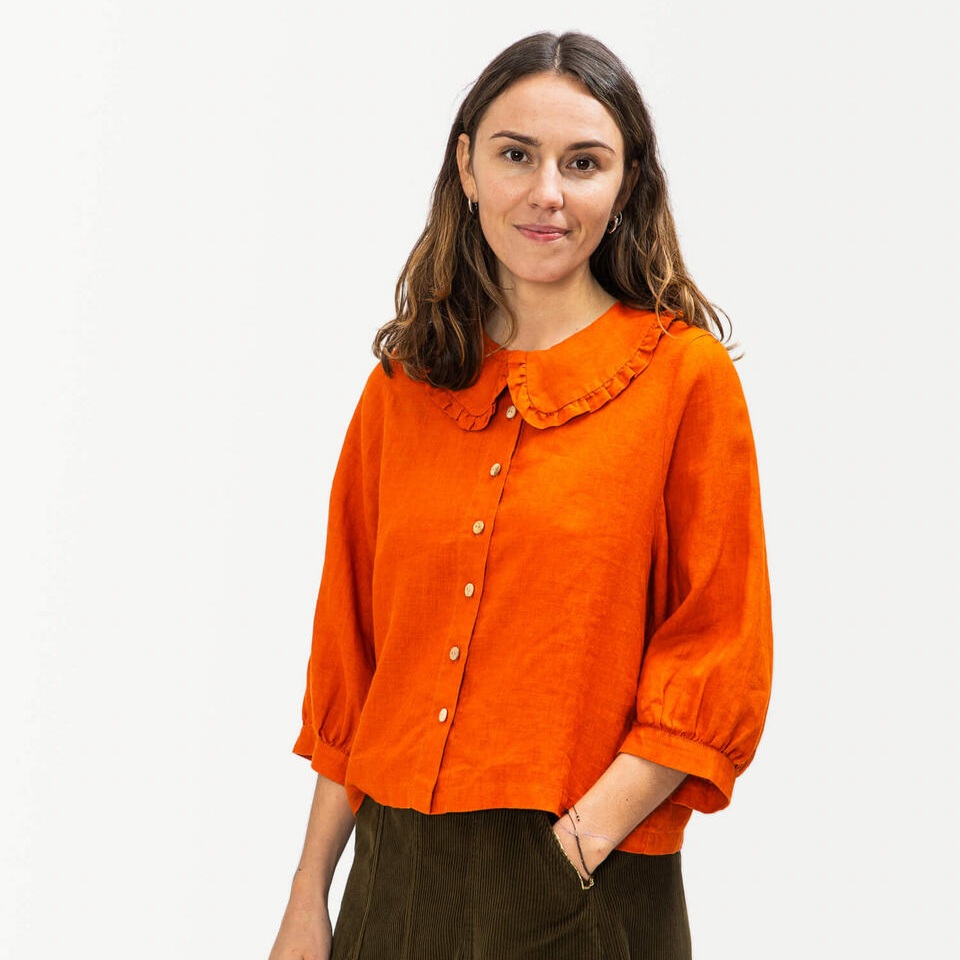 Wunderschöne Leinenbluse in einer tollen Farbe mit einem super schönen Kragen.