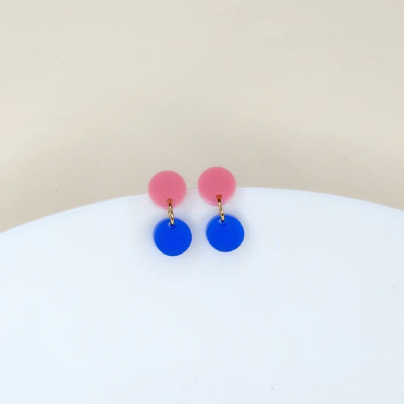 Die Ohrringe sind in liebevoller Handarbeit im Atelier gefertigt. Verwendet wurde glänzendes Acryl und gut verträgliche Edelstahl Ohrstecker.