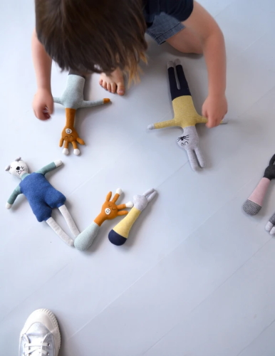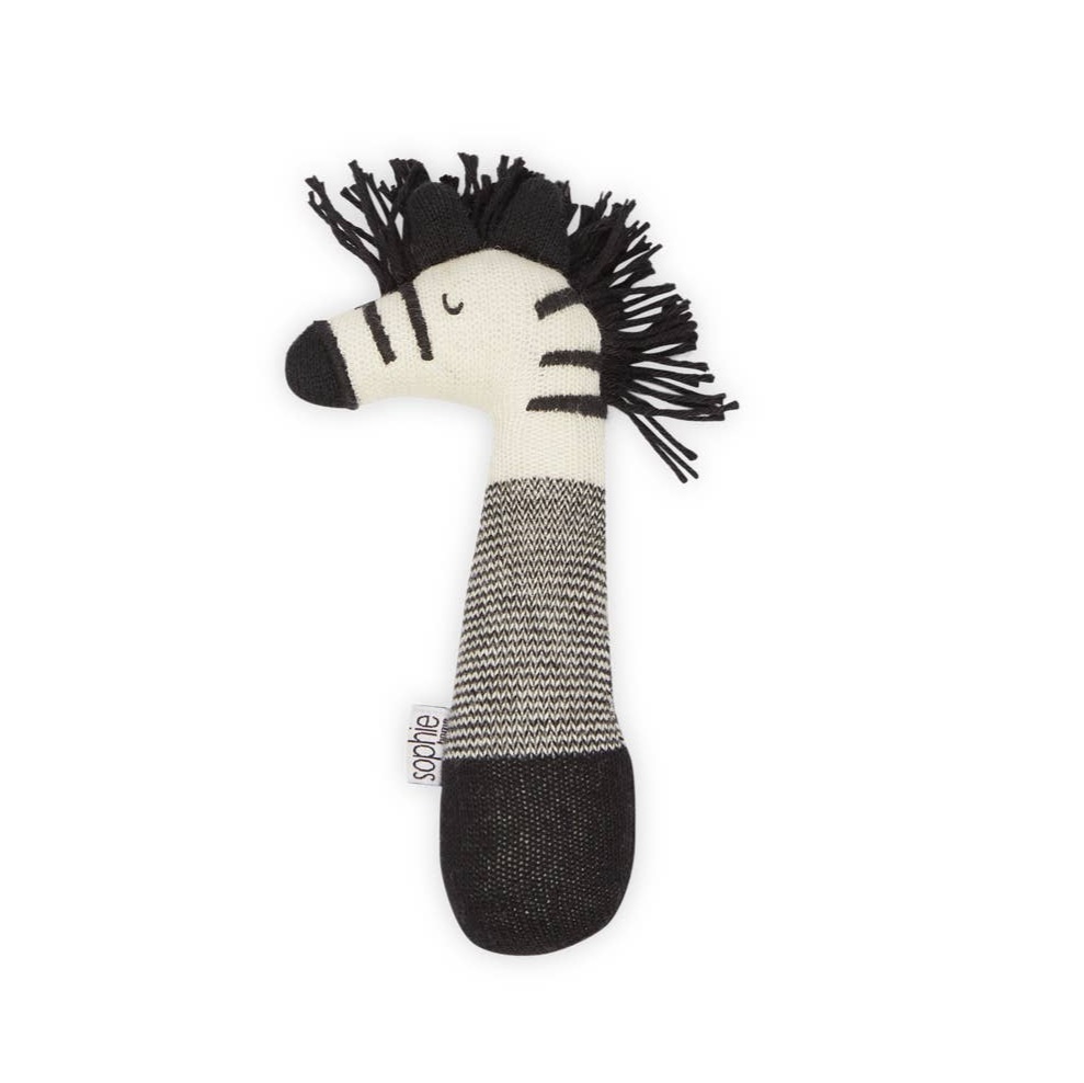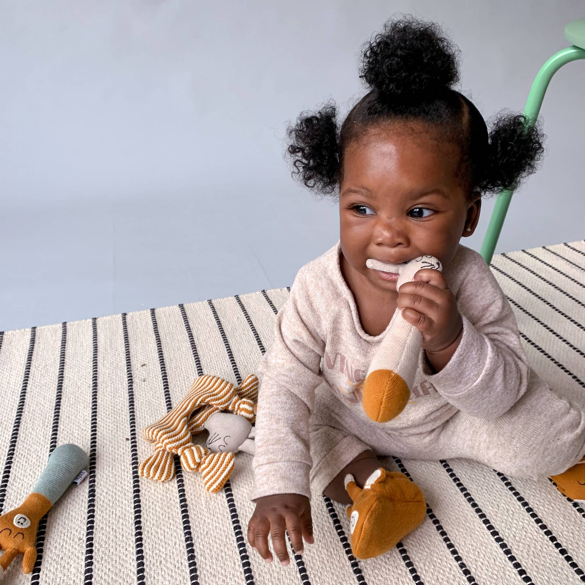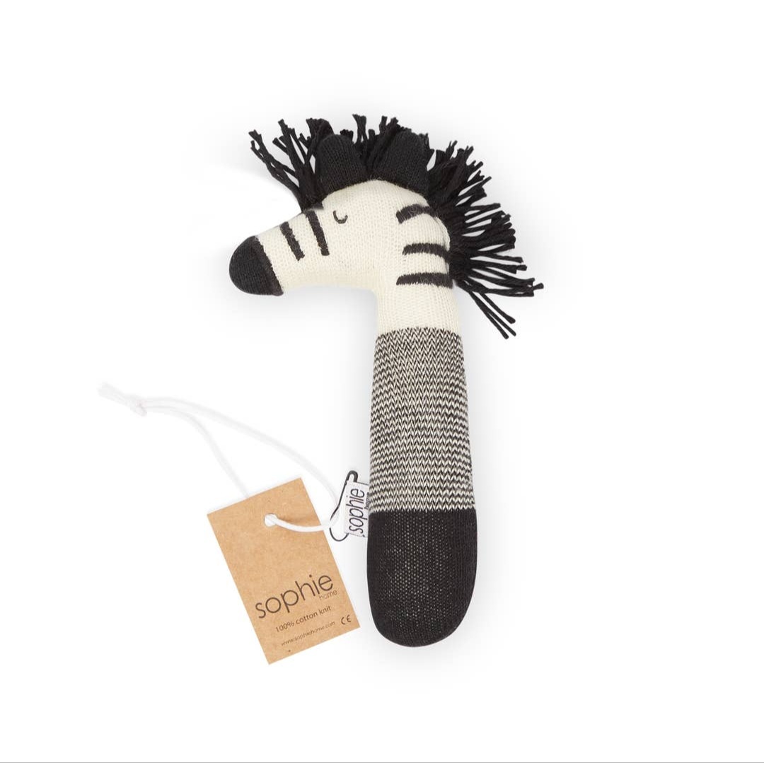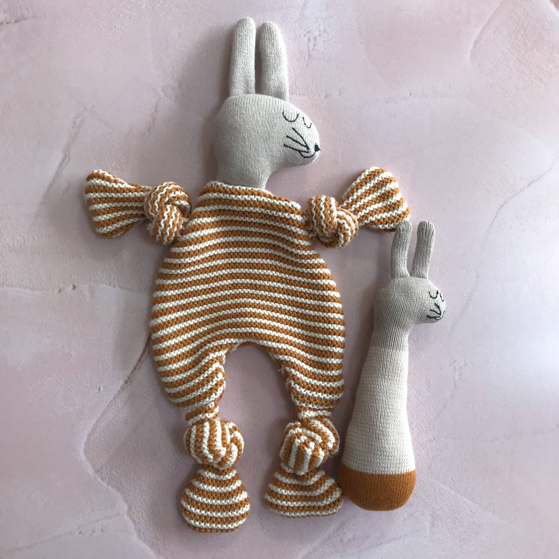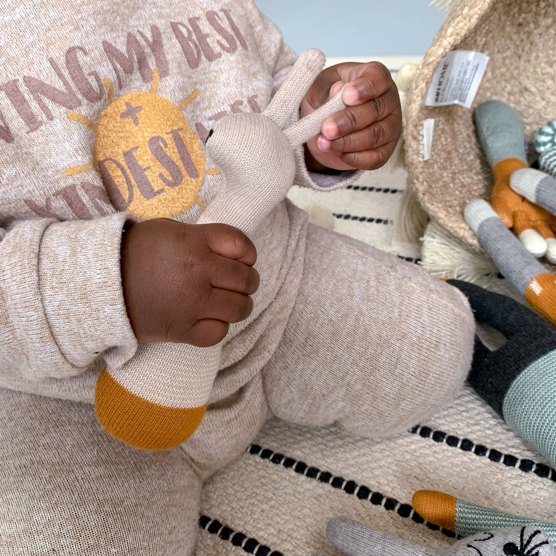 Tolle gestrickte Baby-Rassel in einem hellen rosa.