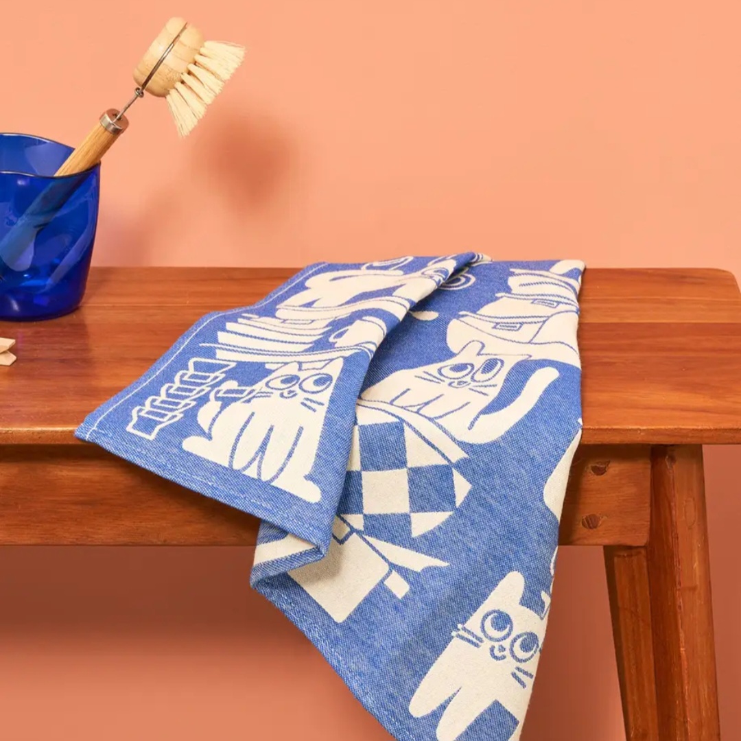 Wrap Geschirrtuch ‘Kitchen Cats’ (blau/weiß)
