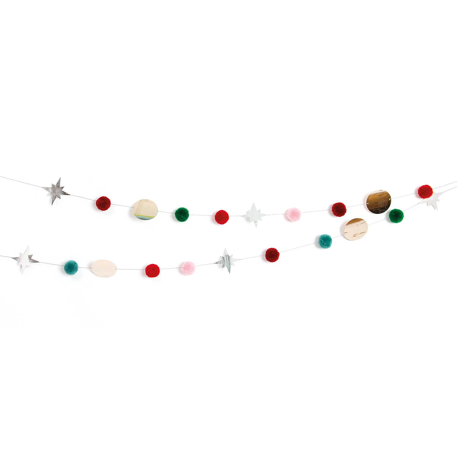 Inhalt: 1 Girlande mit 12 Garnpompons und 9 Maxi-Pailletten
